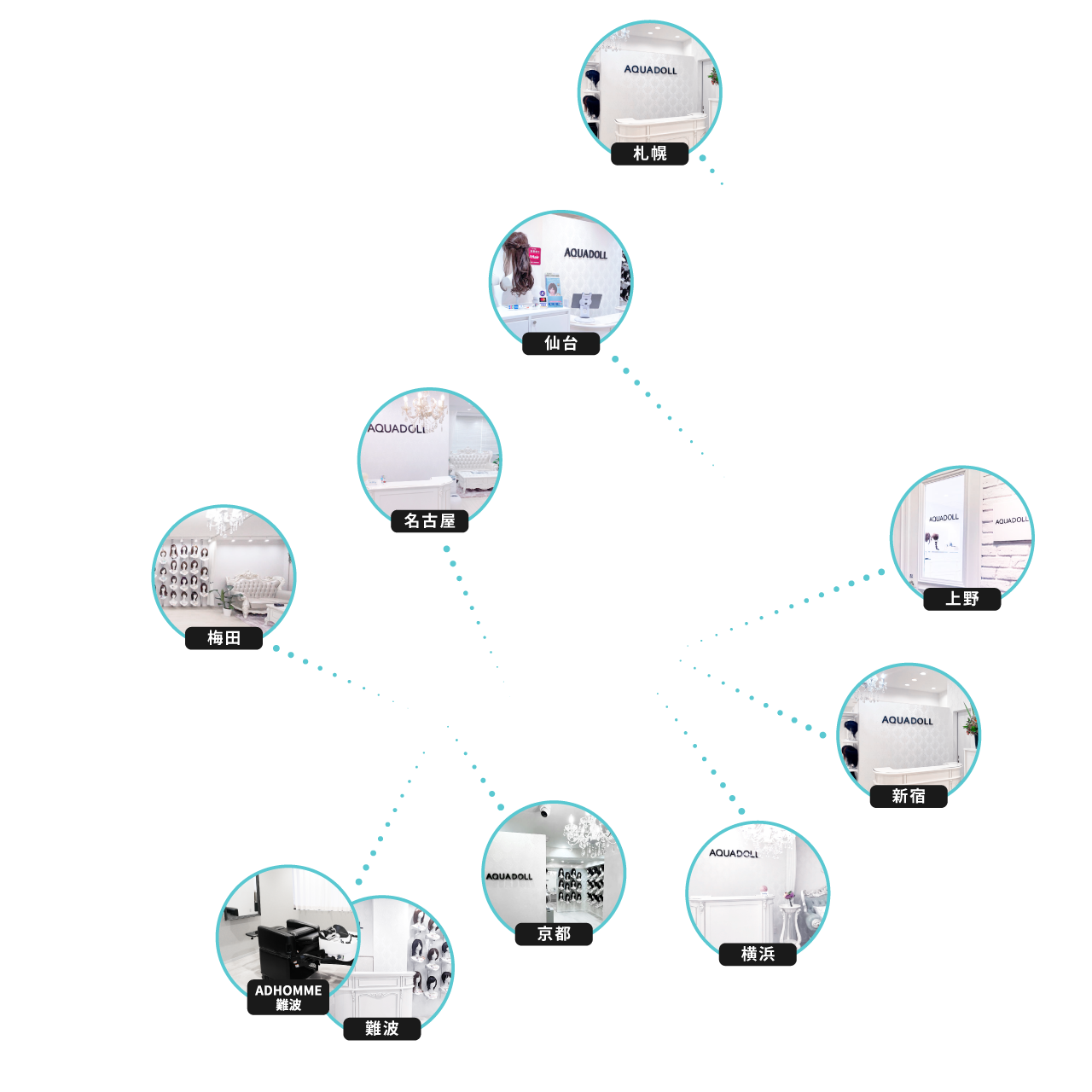 全国の美容サロンと提携し、ウィッグの展示・試着・販売ができるAQUADOLLパートナーサロンを展開しています。